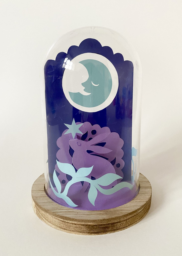 Step into a world of colour, card and creativity, in this kirigami workshop led by paper artist Shobhna Patel. During this relaxed session, you will create a papercraft nature scene, featuring two hares under an embossed moonlit sky. Displayed within a 16cm beautiful glass cloche.